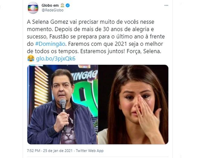 After an official press release, globo's own profile on social media reflected fausto silva's decision to leave the station faustão. Selena gomez is seriously obsessed with hoop earrings and we heart.